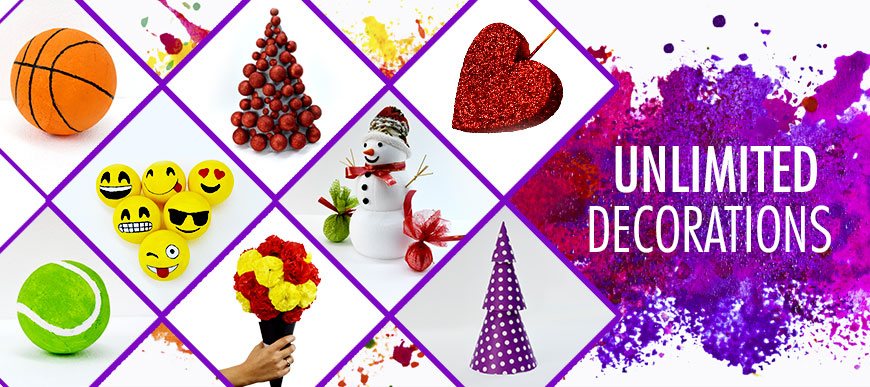 We offer a large variety of decoration products made from 100% high-quality expanded polystyrene foam. Schools, moms at home, kids, artists and interior design industry use our products to make valuable ornaments, amazing decoration and DIY projects.